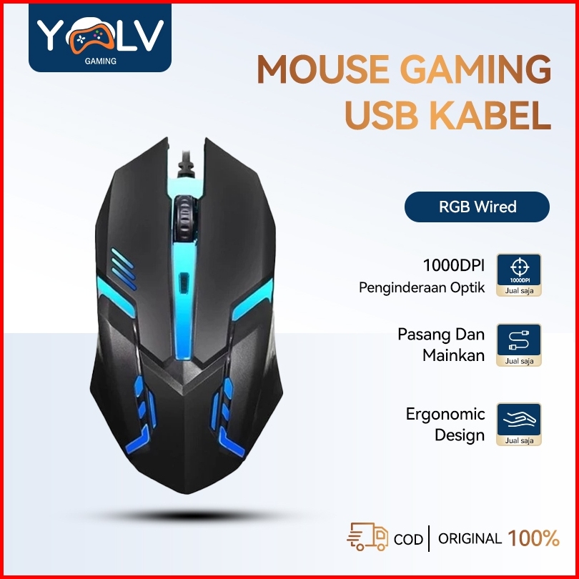 Ylv Mouse Gaming Kabel Usb Wired Rgb Portable Optical 1000dpi Silent Click For Pc Laptop