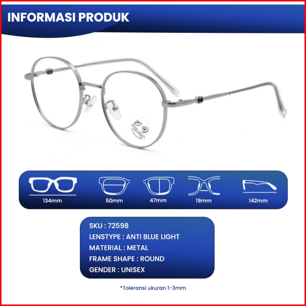 Iooi Eyewear - Kacamata Round Metal Anti Radiasi Blueray Photocromic Pria Wanita 72598
