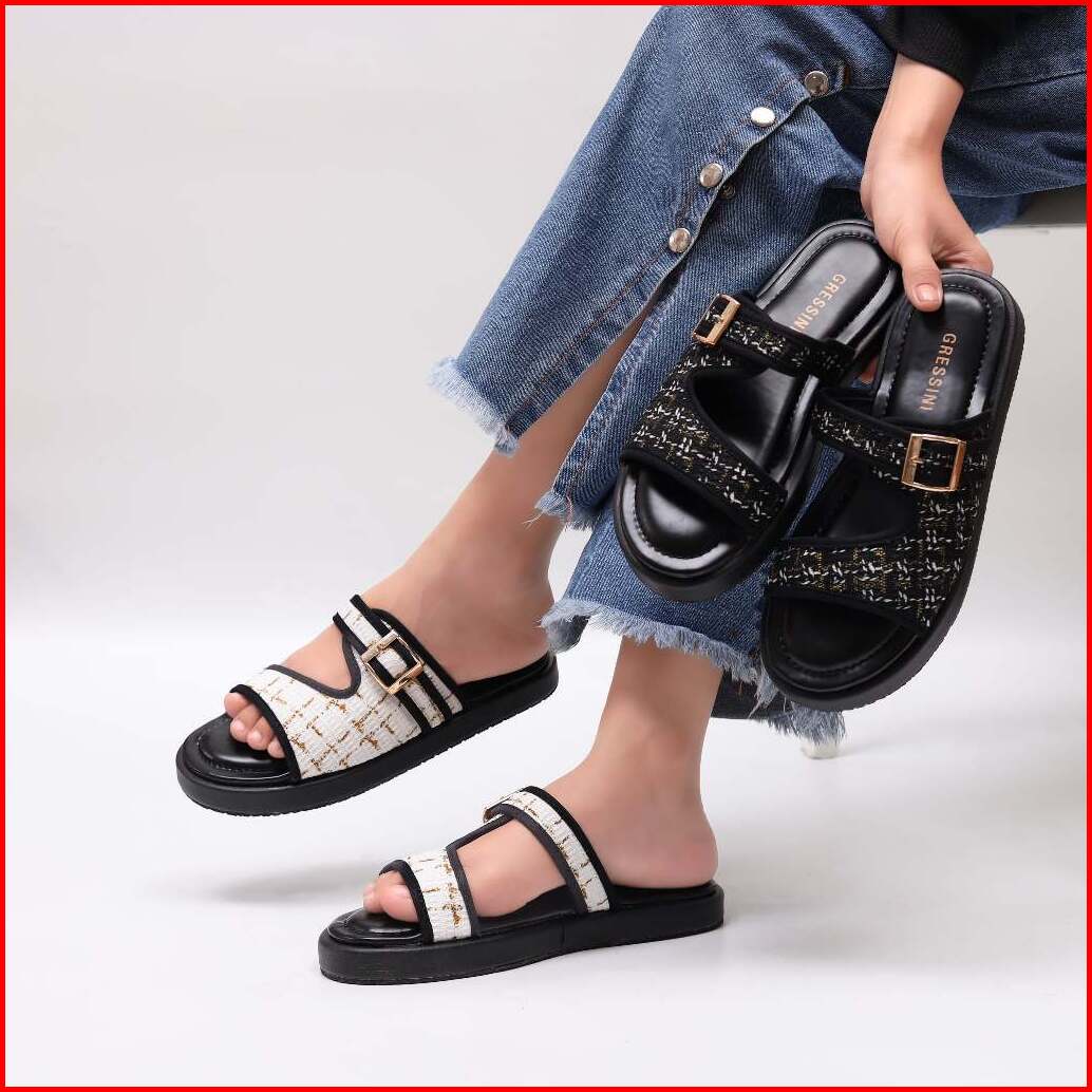 Gressini - Sandal Gesper Rajut Wanita Kekinian Sandal Slop Platform Wanita Model Terbaru