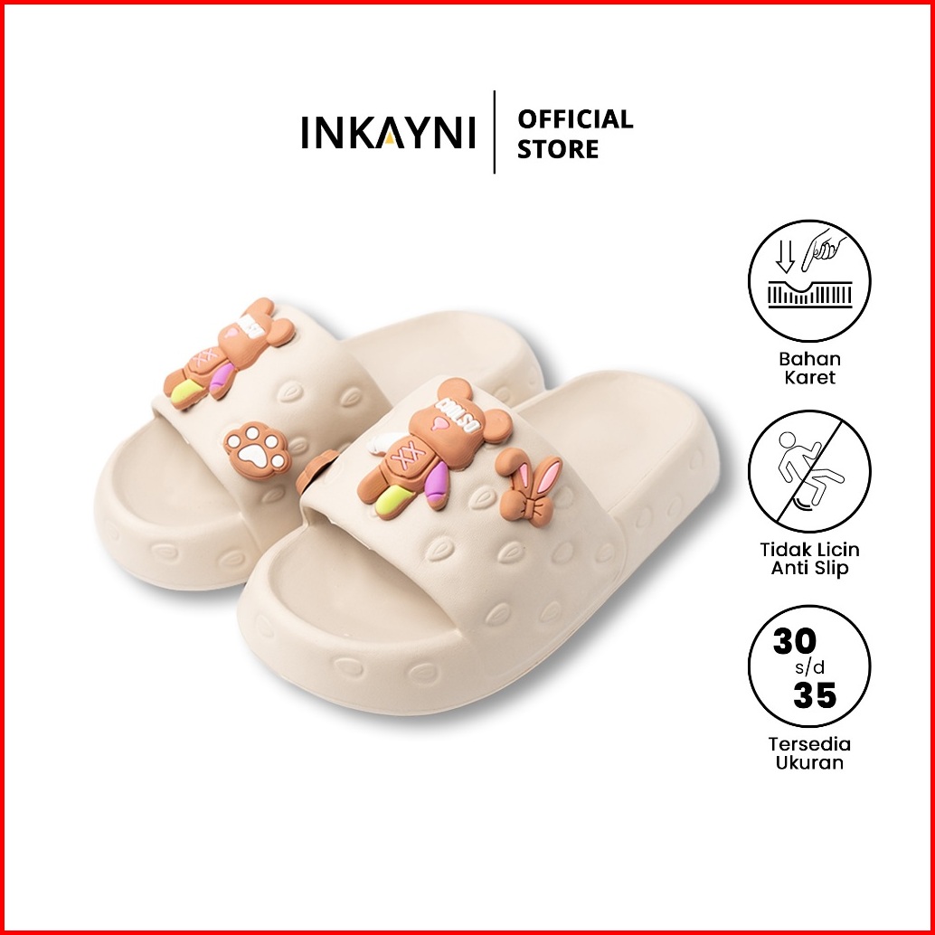 Inkayni Sendal Selop Anak Perempuan Size 30-35 Anti Selip Motif Cool So Bear Ringan Empuk Slip On