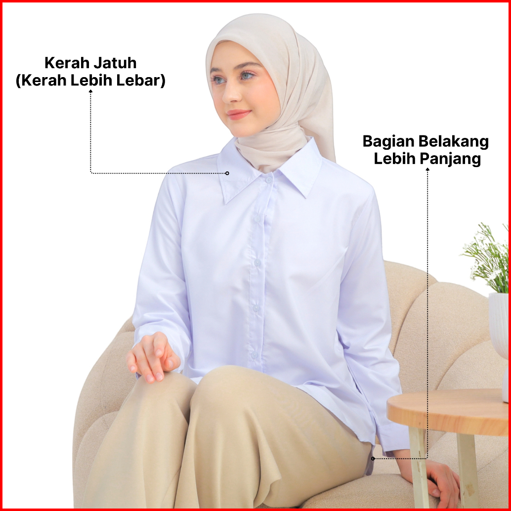 Atasan Kemeja Wanita Lengan Panjang Kerah Jatuh Putih Polos Untuk Kerja Kantor Kasual
