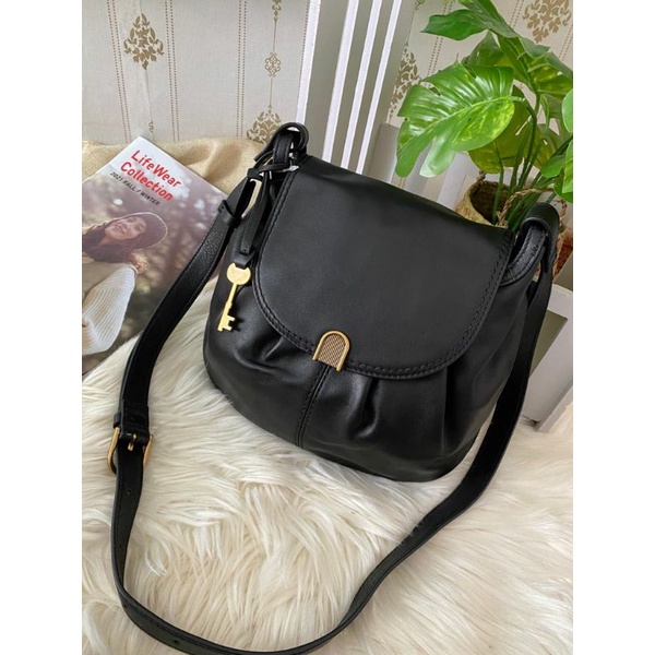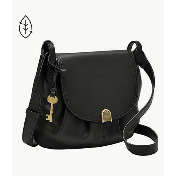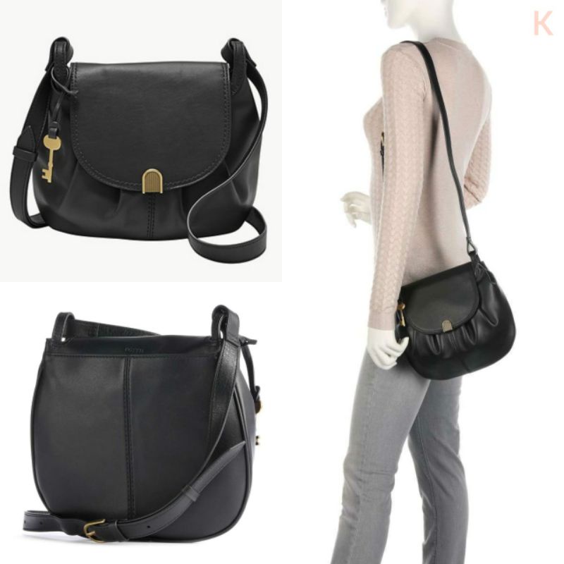 FOSSIL GIGI FLAP BLACK KULIT ORI BARU TAS SELEMPANG WANITA KEKINIAN SIMPLE