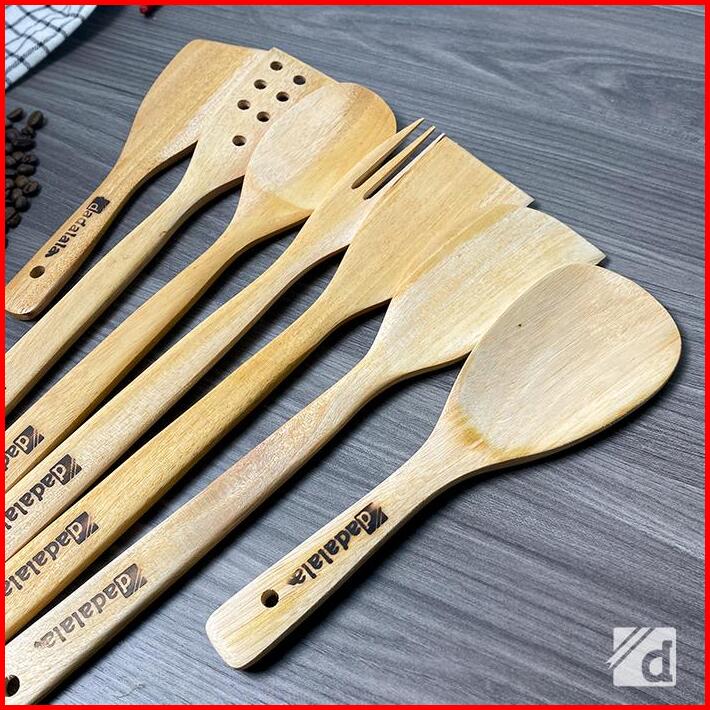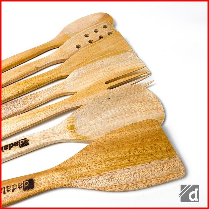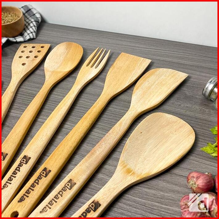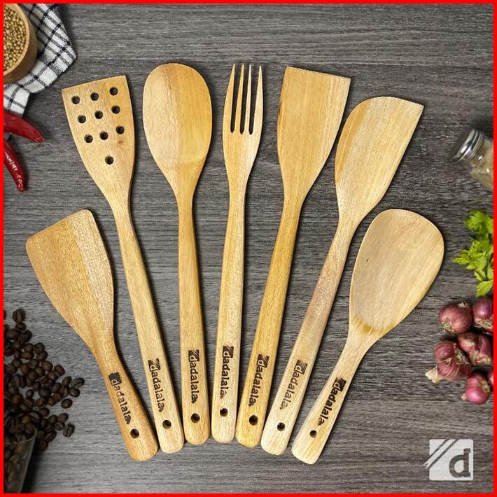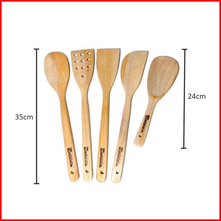 Dadalala Spatula Set Sodet Isi 7 Pcs Panjang 35 Cm Peralatan Masak Bahan Kayu Mahoni Tahan Panas Dan Anti Lengket Alat D