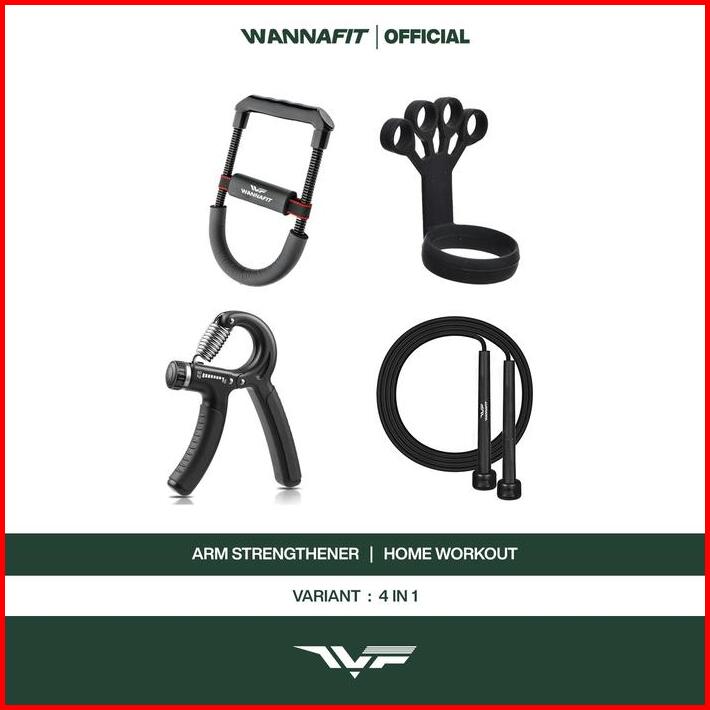 Wannafit Paket 4 In 1 Arm Trainer Power Wrist Skipping Finger Resistance Grip Alat Olahraga Rumah