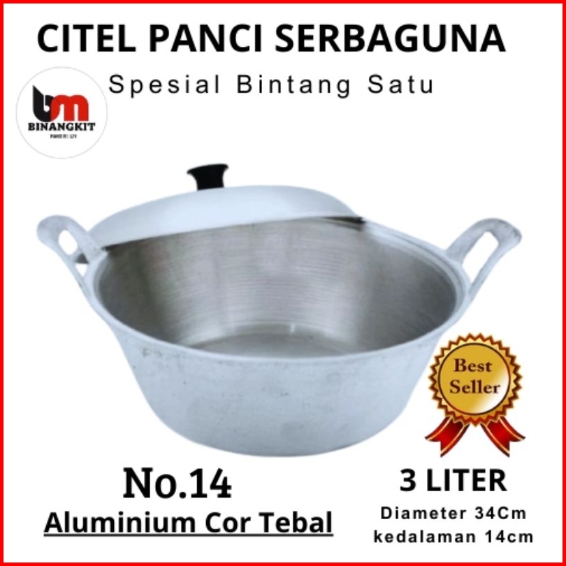 Citel Panci Katel Almunium No 10.12.14 Cap Bintang Satu Serbaguna Anti Lengket Tebal Tahan Lama