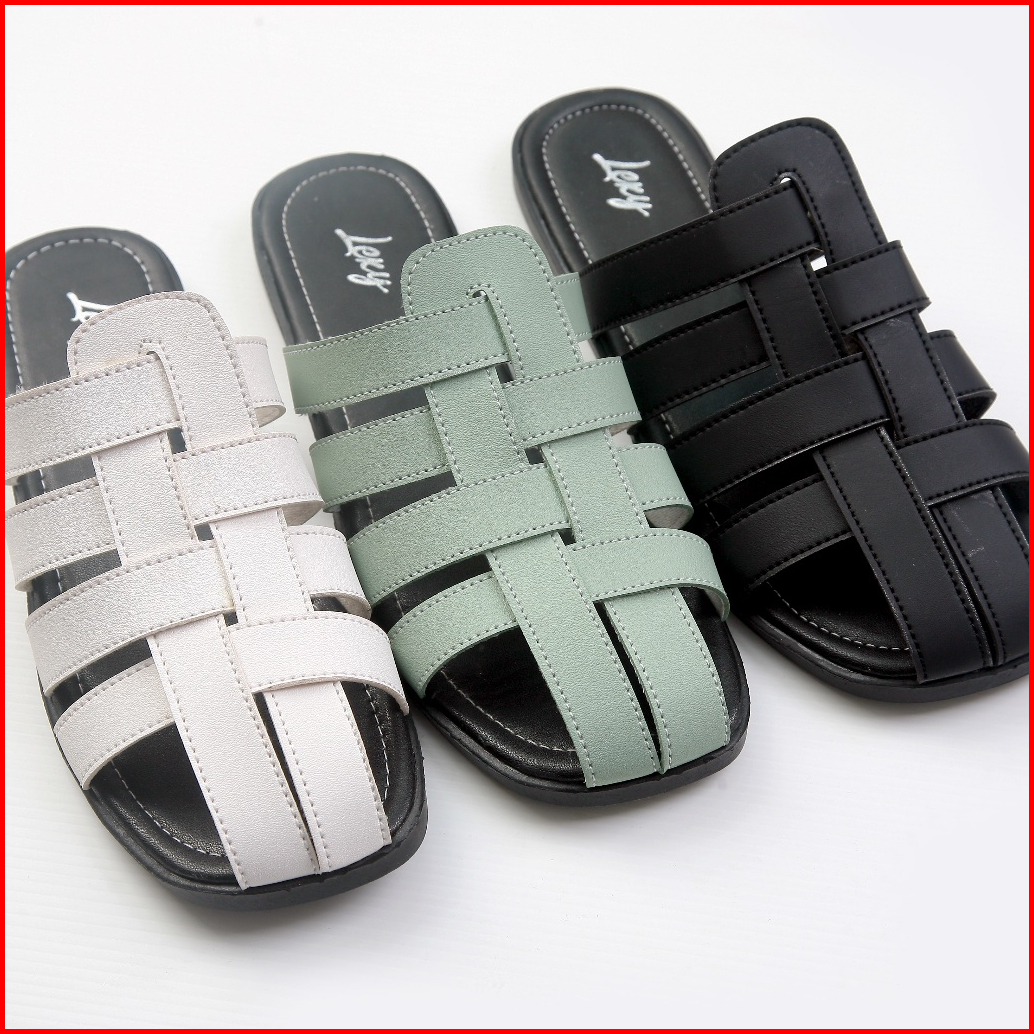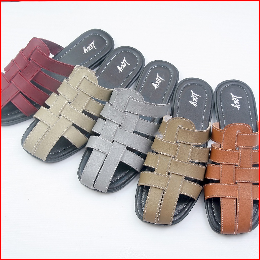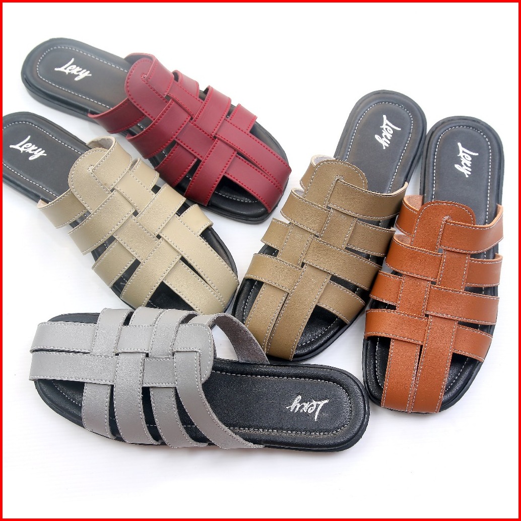 Lexy Sherina Flat Sandal Wanita Teplek Kulit Non Slip Sole