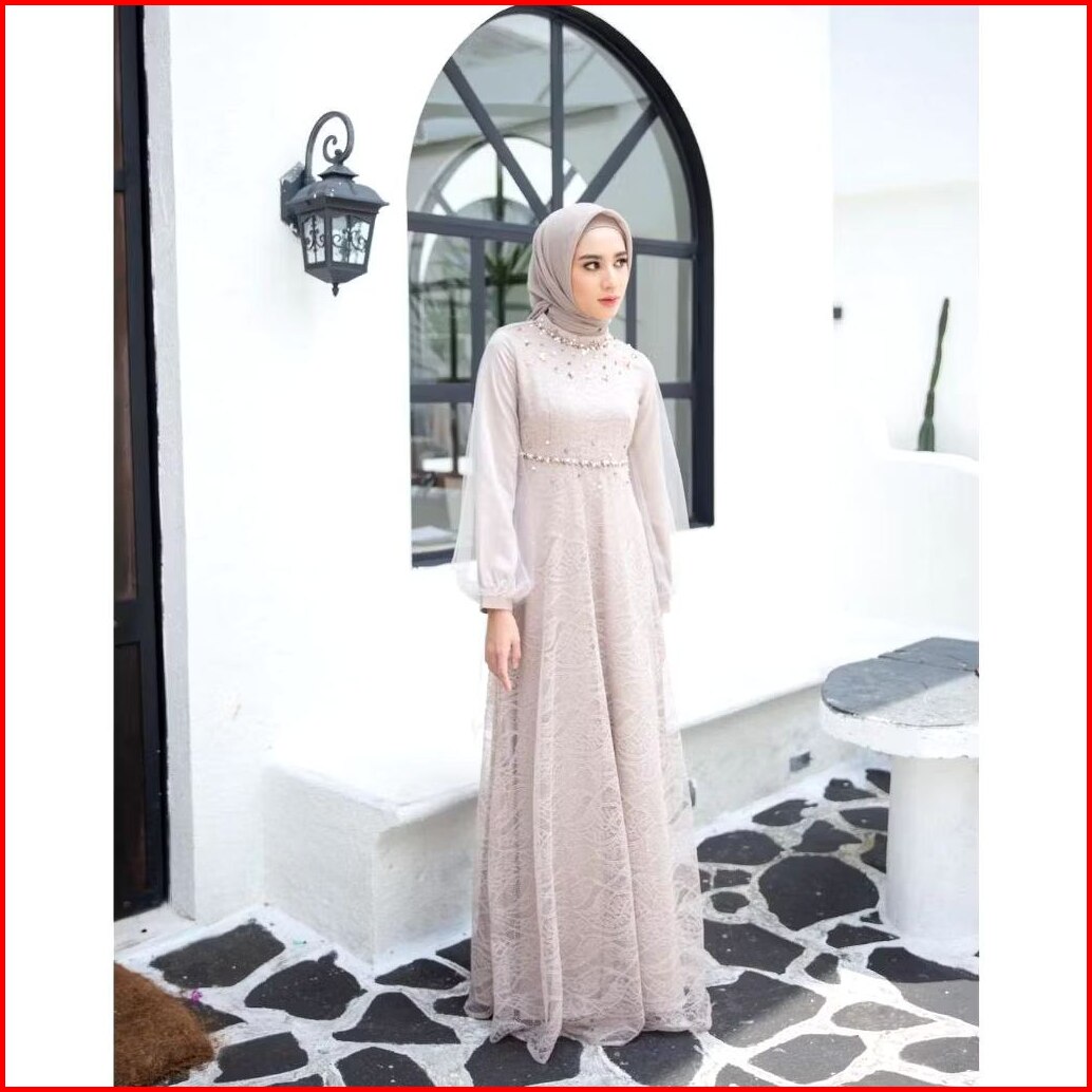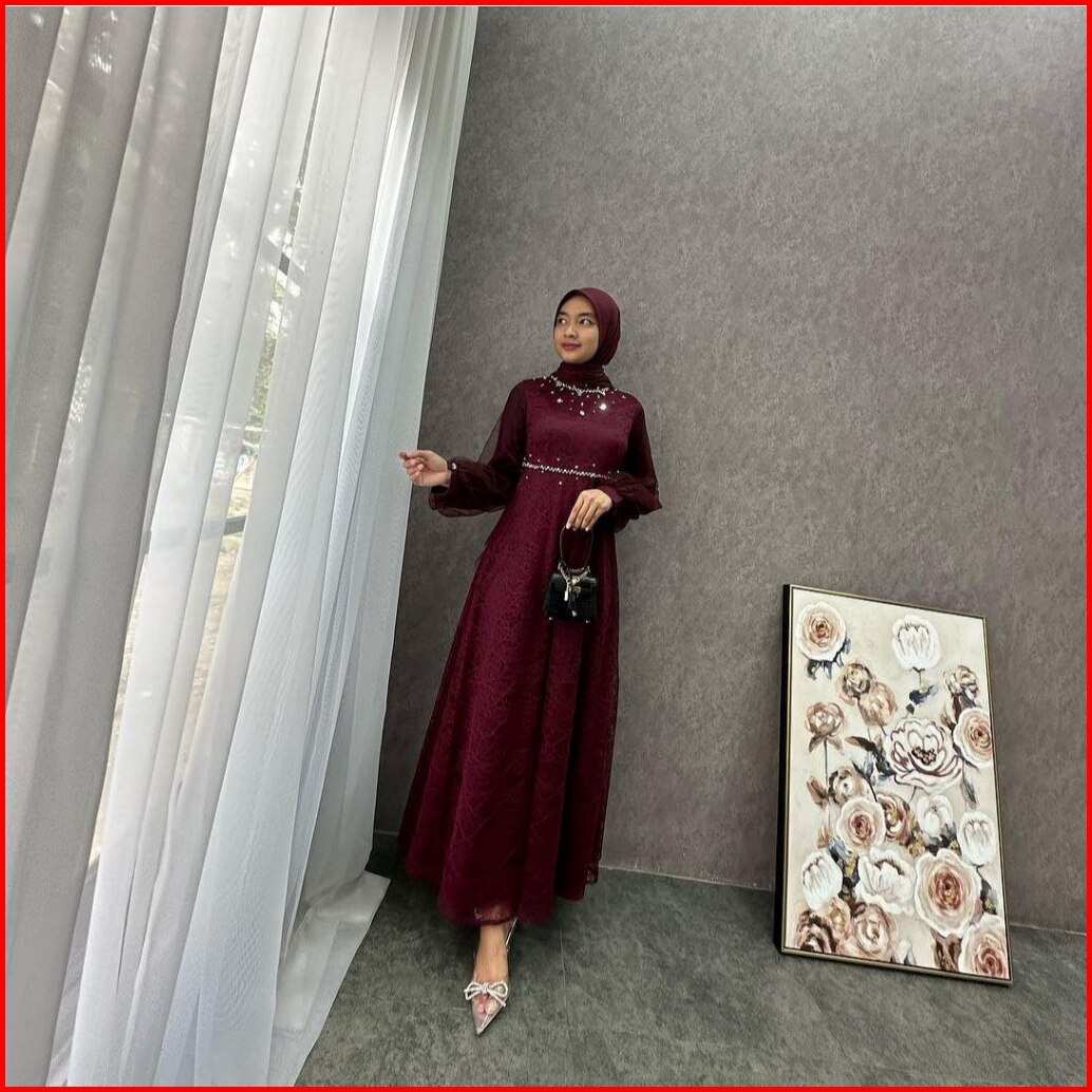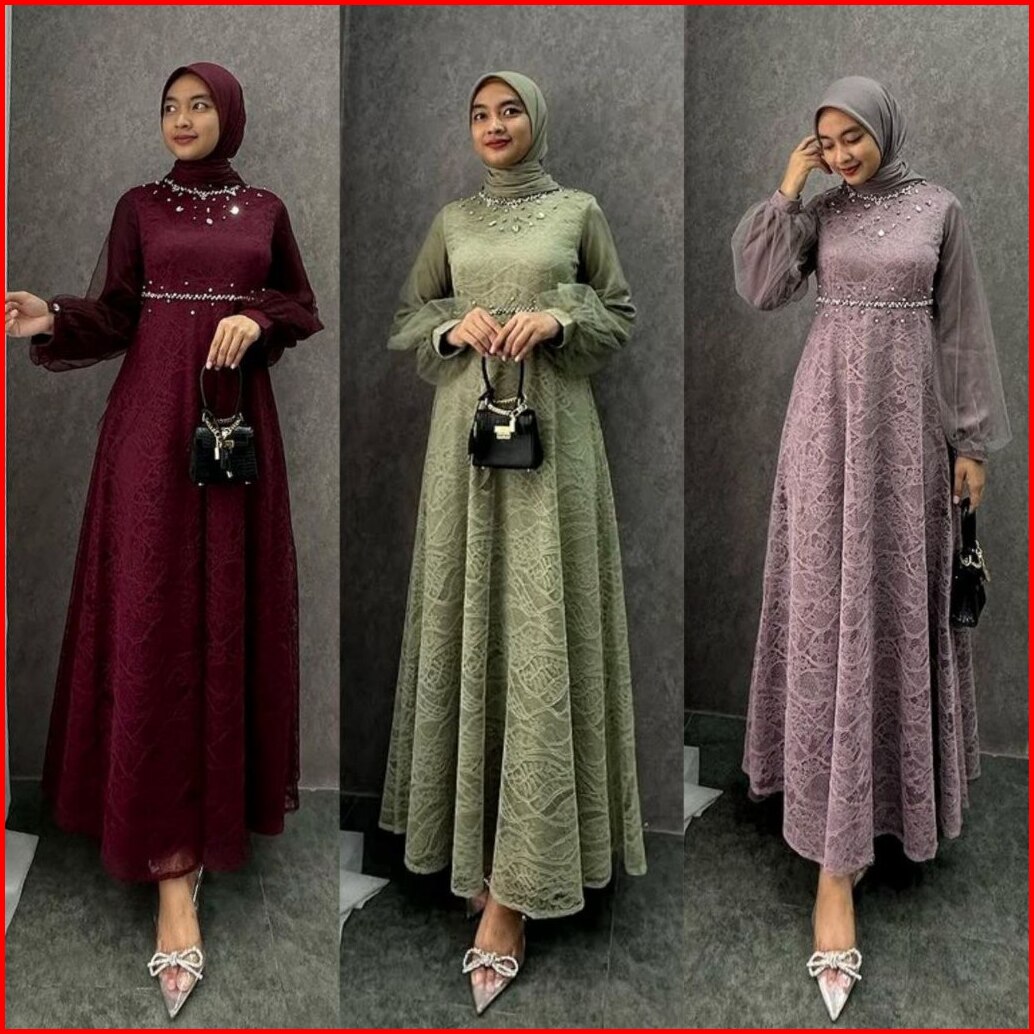 Gamis Nadine Dress Exclusive Gamis Brukat Pesta Mewah Elegan Kondangan Lebaran Wanita Muslim Terbaru