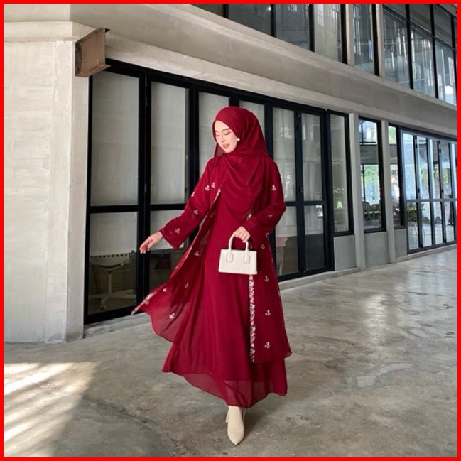 Trisya Abaya Ootd Dress Kekinian Matt Premium Gamis Outher Turkey Muslim Wanita Pesta Dewasa Lebaran Mewah Kondangan Hit