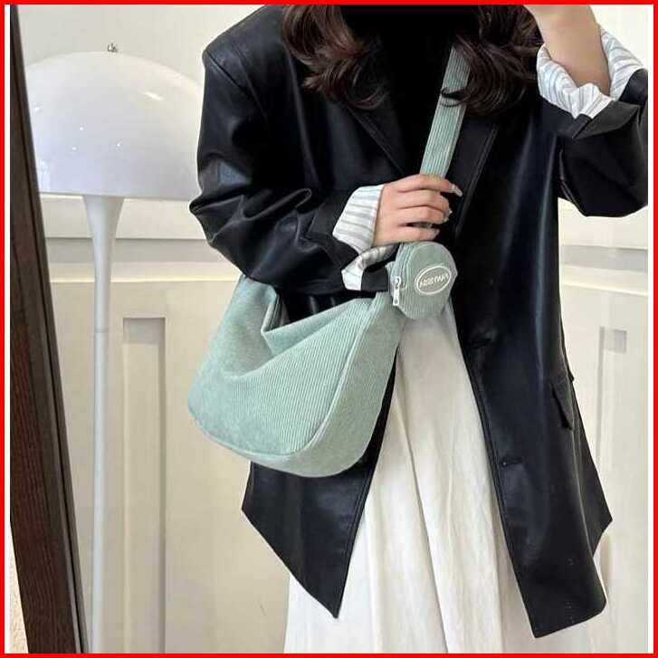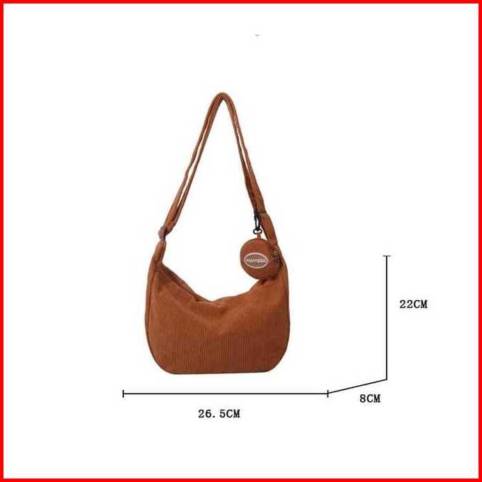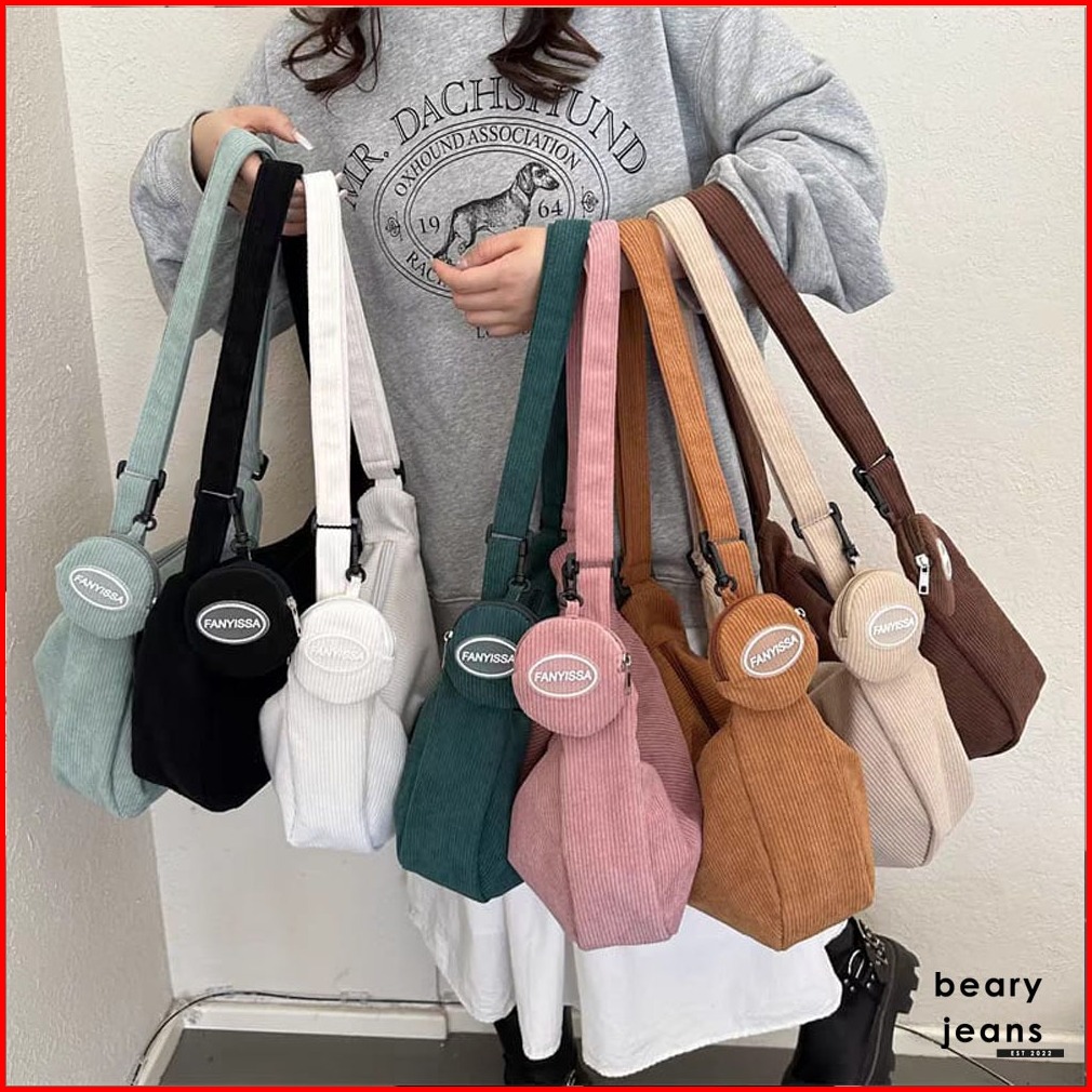 Beary Jeans Bj194 Corduroy Sling Bag Casual Solid Tas Bahu Ootd Corduroy Wanita Retro Shoulder Bag Import