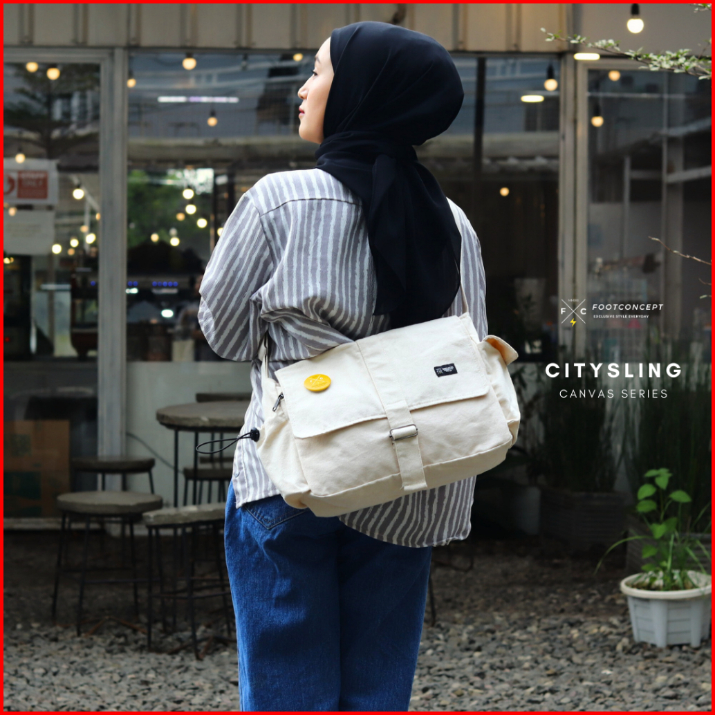 Footconcept Tas Selempang Kanvas Pria Wanita Kekinian Sling Bag Laptop Kerja Kuliah Citysling Series