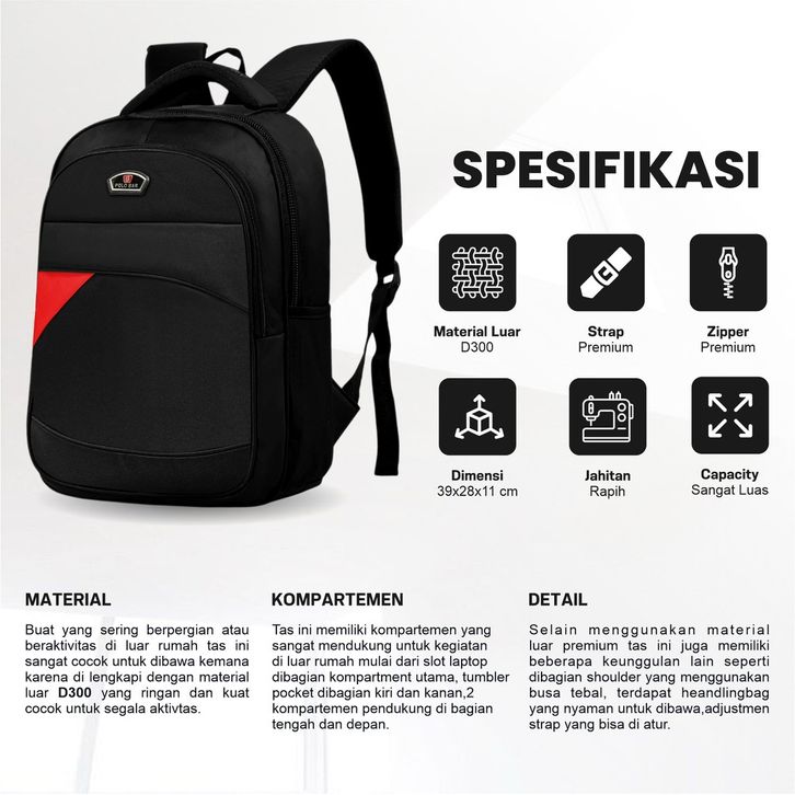 Tas Ransel Casual Unisex Tas Punggung Backpack Simpel Polos Muat Banyak - PG 40