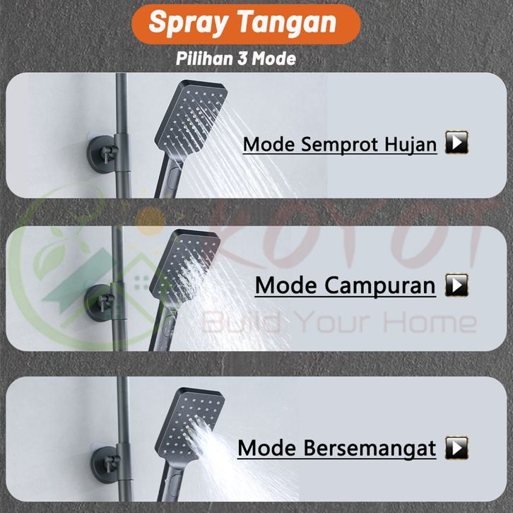Kran KOYOT Desain Tvts Piano Shower Kamar Mandi Full Set Panas Dingin Persegi Abu-abu dengan Mixer Panas Dingin 4 Ways