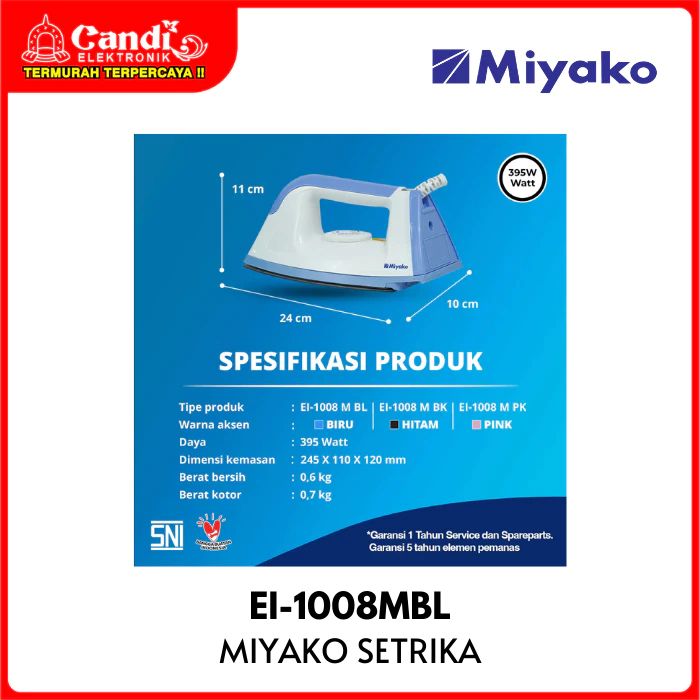 MIYAKO Setrika Listrik Anti Lengket 395 Watt EI-1008MBL