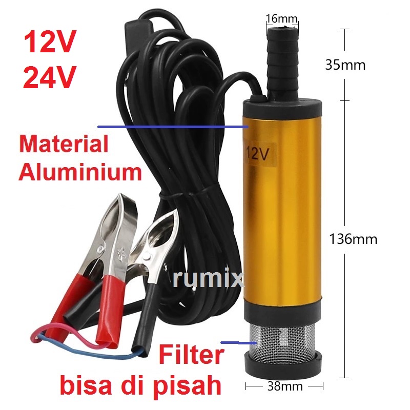 Pompa Minyak Celup Air Mini Kecilmp Mini Oli Solar Air Submersible Portable 12V Diesel Pump