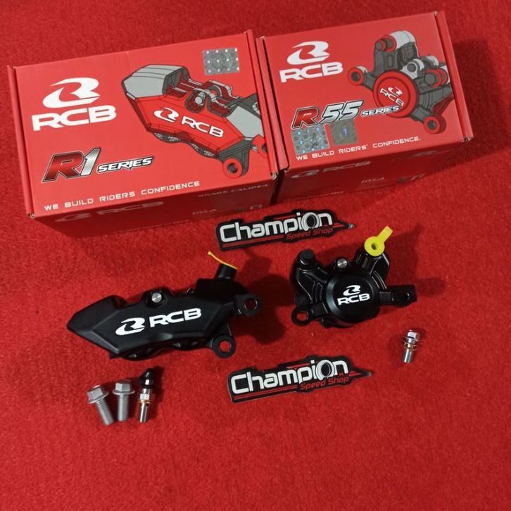 Paket Kaliper Rem RCB Racing Boy Original 4 Piston 2 Piston R1 R55 Series Black Hitam Universal