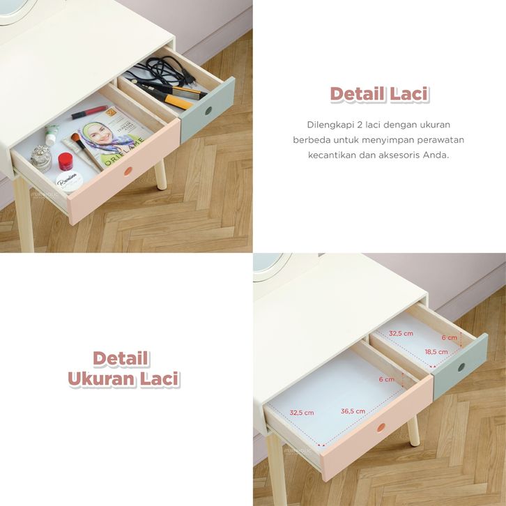 IFURNHOLIC Jovita Vanity Table | Meja Rias Kayu Aesthetic | Meja Make up Minimalis | Mirror Table