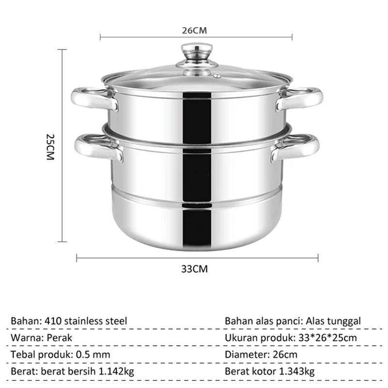 Panci Kukus Serbaguna Panci Steamer Stainless 2 Tingkat Kukusan Stainless Steel 28cm Panci Kukus 28CM