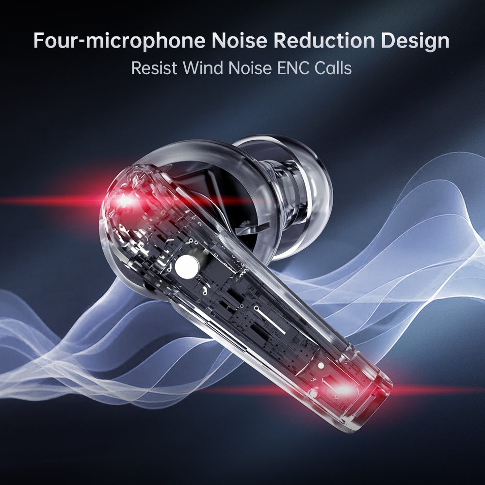 Machenike TH60 Bluetooth 5.4 Earphone Nirkabel TWS In-Ear Earbud 4 Mikrofon ENC Panggilan Pengurangan Kebisingan 0.04S L