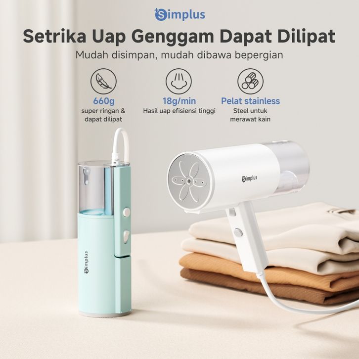 Setrika Uap Portable Simplus Setrika Uap low watt 800w Lipat Ringan Steamer Foldable Handheld Portable