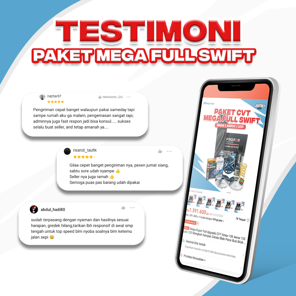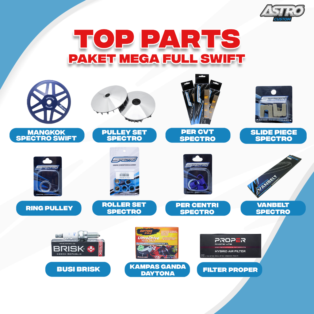 PAKET MEGA SUPER FULL UPGRADE CVT MIO J X RIDE FINO SOUL GT 115 MANGKOK KAMPAS GANDA SWIFT PER CVT ROLLER FILTER UDARA