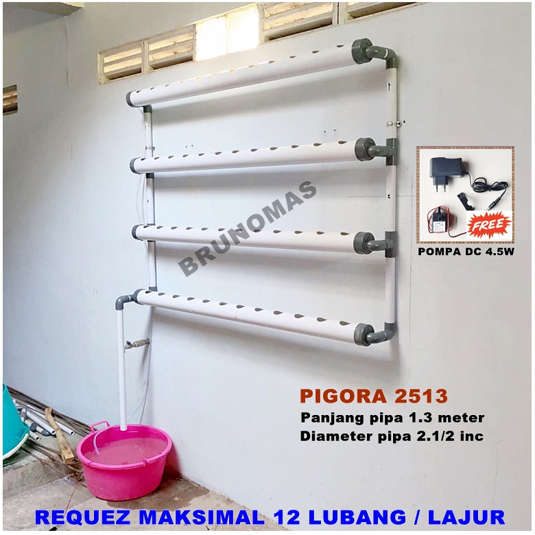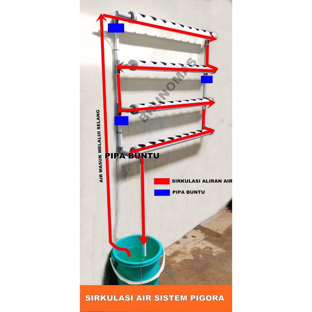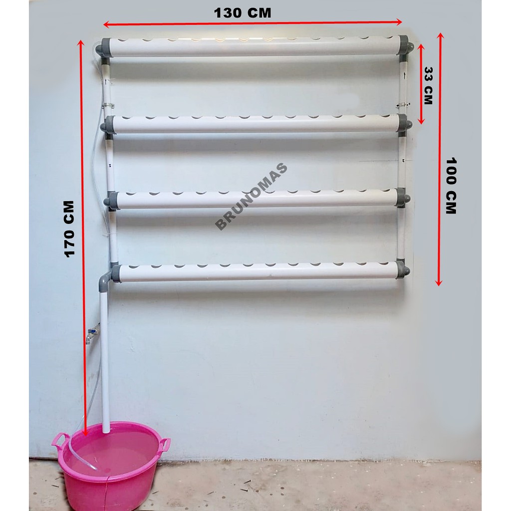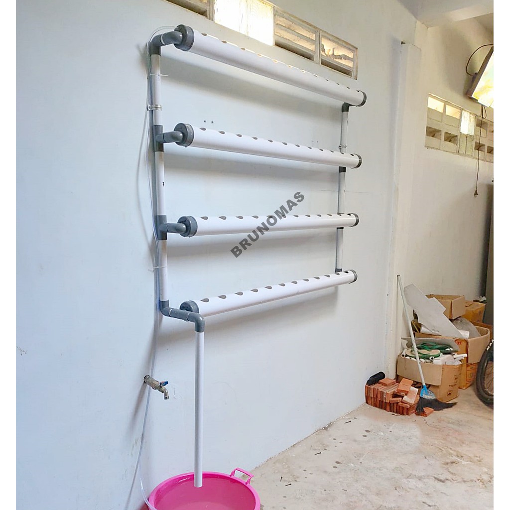 Paket Instalasi Hidroponik Model PIGORA 2.5 Inc / 2 Inc- Pipa Pvc Maksimal 48 Lubang Tempel Dinding