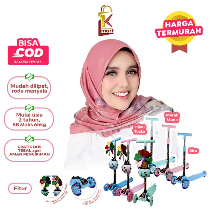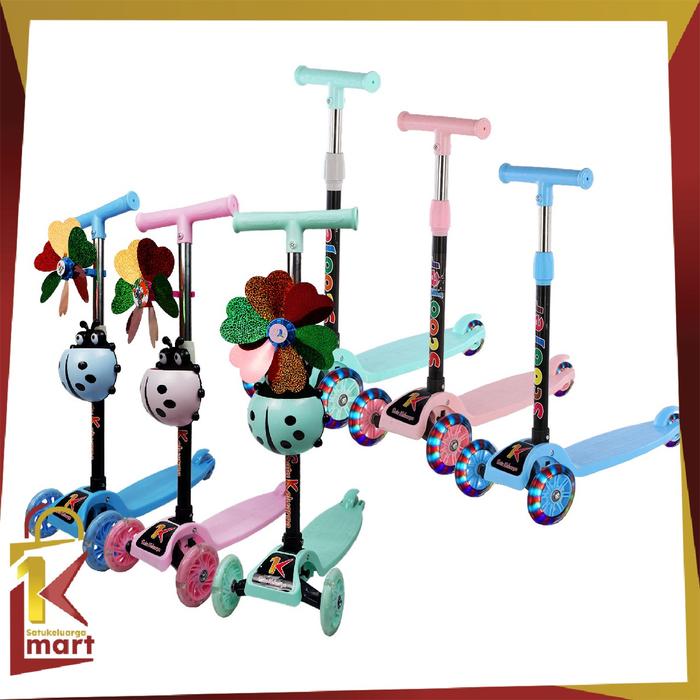 SM M95 Mainan Skuter Otopet Anak Kumbang Anak Roda 3 Toys Lampu Mobil - LENGKAP - MERAH MUDA