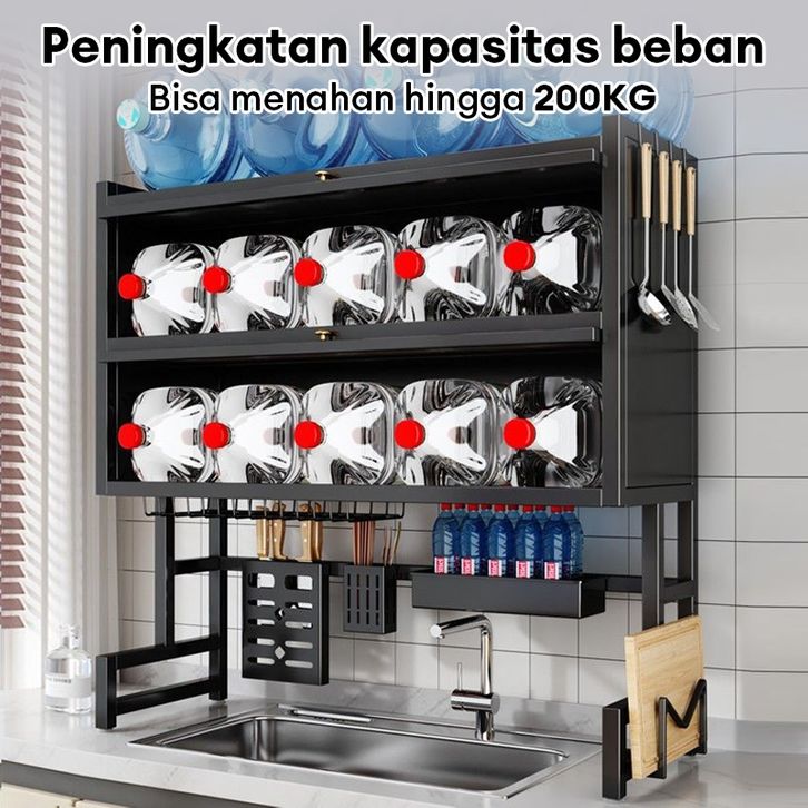 Rak Piring Stainless Steel Dua Lapis Dengan Penutup Rak Dapur Multifungsi Kabinet Rak Penyimpanan Piring