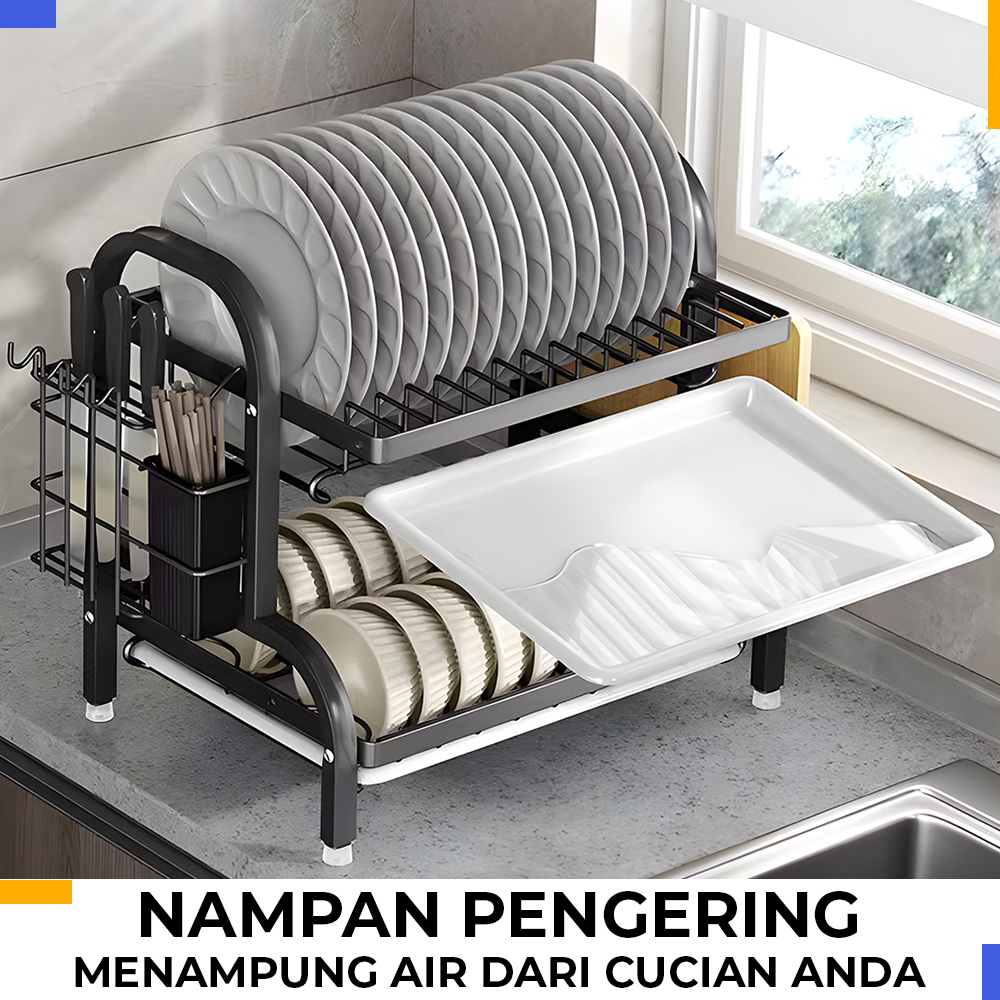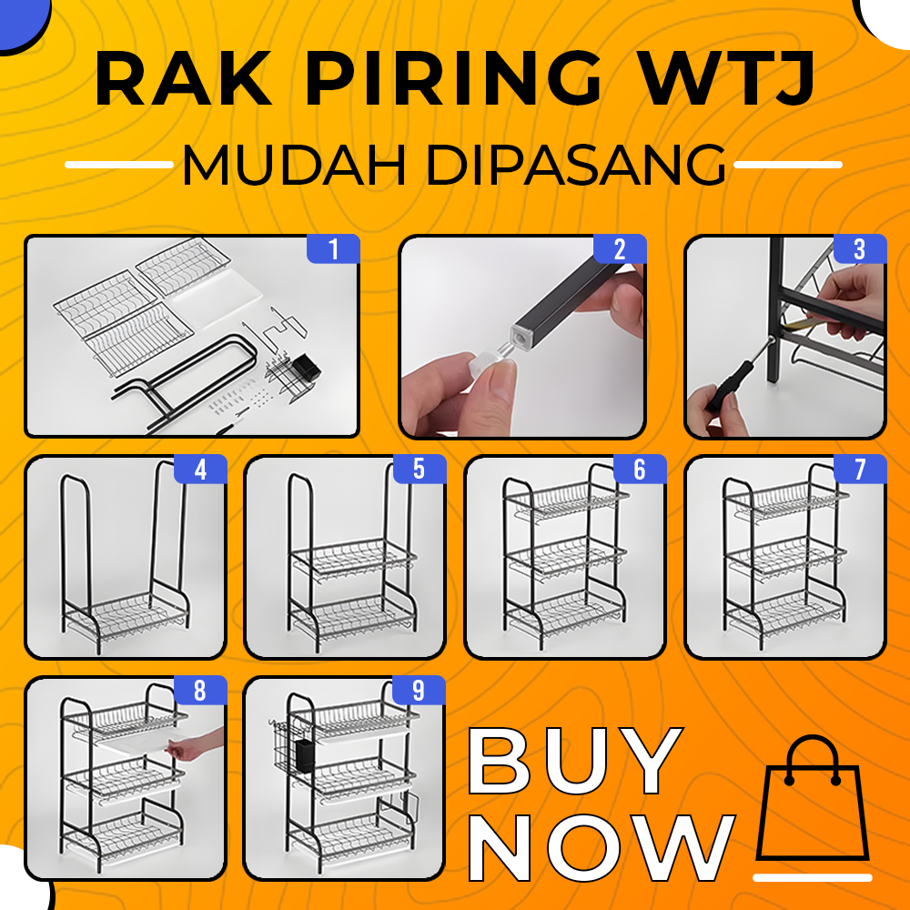 WTJ-1 Rak Piring Dapur Kuat Rak Piring 2 & 3 Susun Rak Piring Stainless Rak Cuci Piring