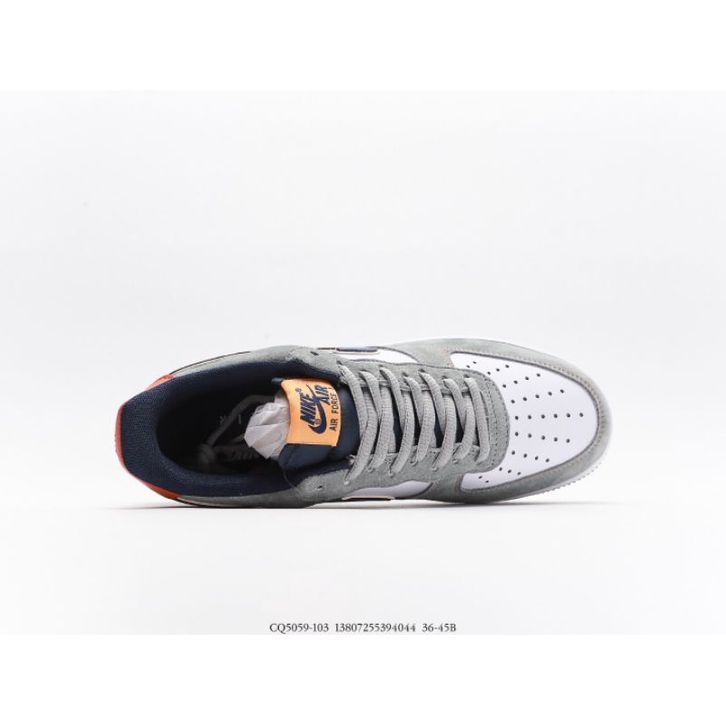 PROMO NEW Sepatu Nike Air Force 1 07 Low White Cool Grey Navy Blue Orange CQ5059-103 BNIB Authentic