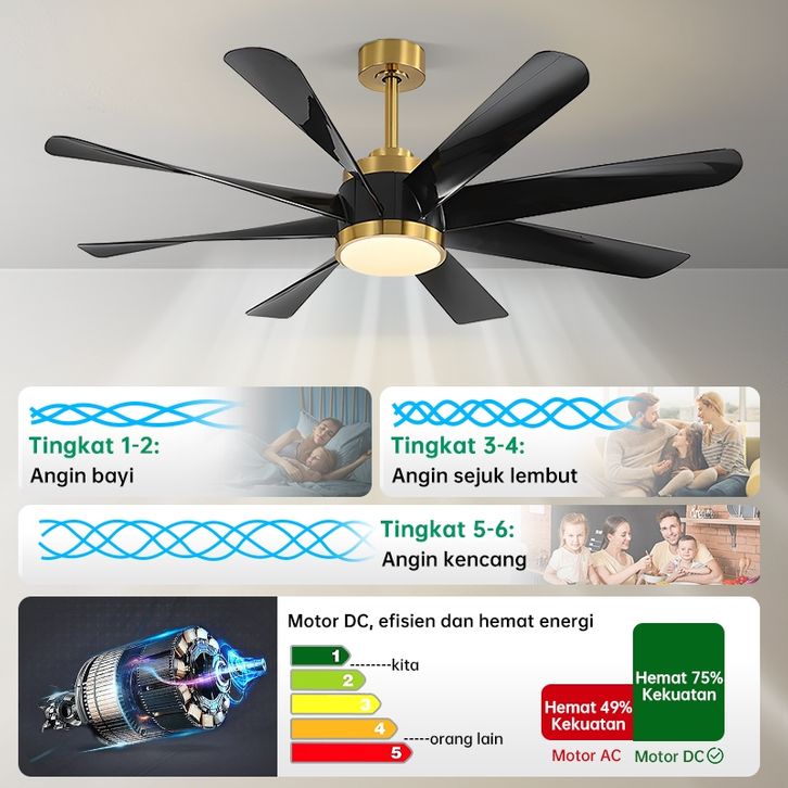 Lampu Kipas Angin Gantung Plafon 72 Inci Remote 3Warna Kipas Angin R. Tamu Dengan Lampu Kipas Baling Baling Gantung