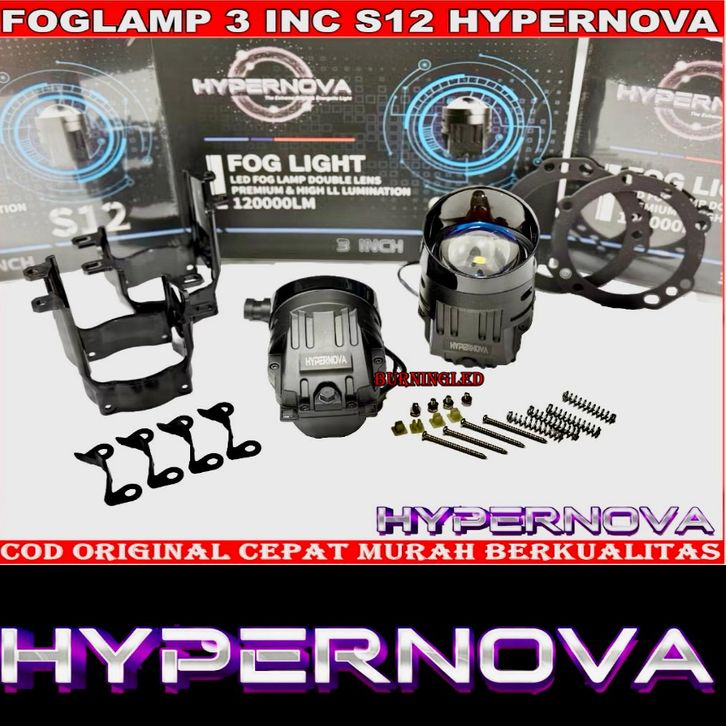 HYPERNOVA - ORIGINAL LAMPU FOGLAMP BILED S12 80 WATT BLUELENS FOGLAMP 3 WARNA 1 WARNA LAMPU MOBIL KABUT ORIGINAL