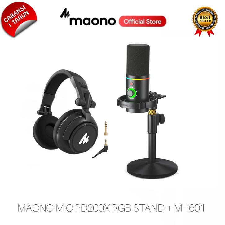 MAONO PD200X Paket Microphone Dynamic Stand dan MH601 Headphone for Hp Live Streaming Gaming .cast