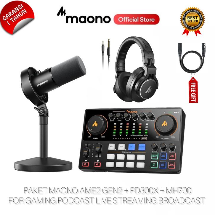 MAONO AME2 GEN2 Paket Soundcard Microphone PD300X Dynamic with MH700 Headphone for .cast Streaming