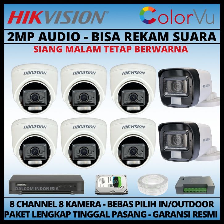 PAKET CCTV HIKVISION COLORVU 2MP 8 CHANNEL 8 KAMERA COLORFUL
