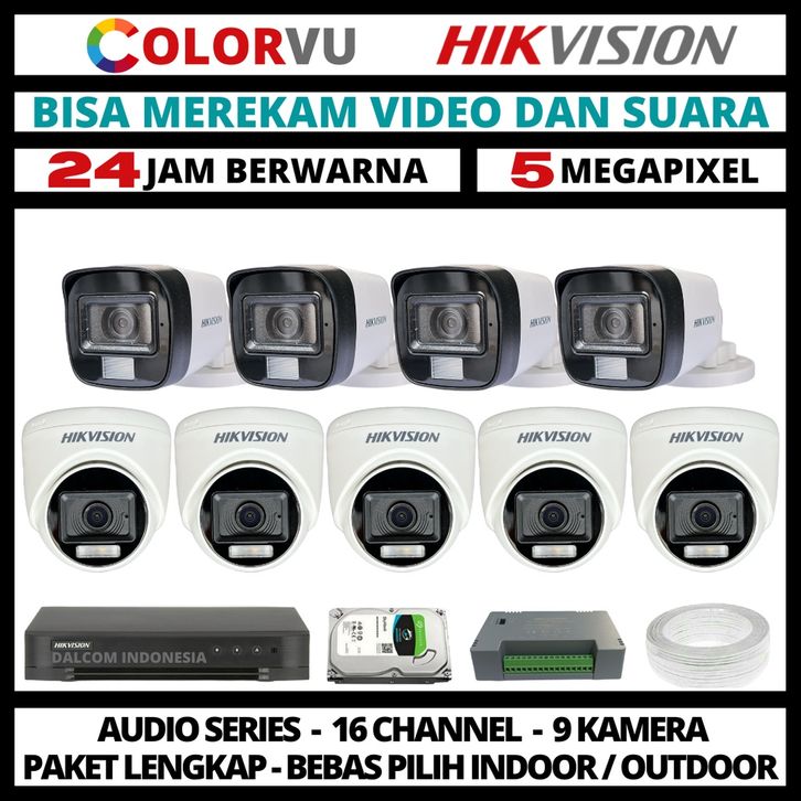 PAKET CCTV COLORVU HIKVISION 5MP 16 CHANNEL 9 KAMERA