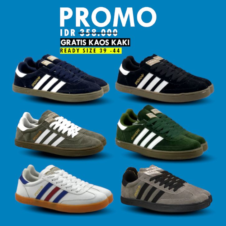 PROMO Sepatu pria wanita unisex spezial garis dewasa warna abu army putih sekolah skena casual made