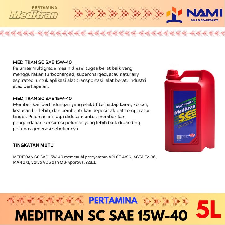 PERTAMINA MEDITRAN SC SAE 15W-40 5L GALON Oli Pelumas Mesin Diesel – Original