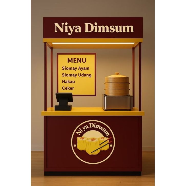 Booth Portable Gerobak Lipat Bahan Alumunium Dengan Roda atau Tanpa Roda Untuk Jualan Dimsum Kekinian