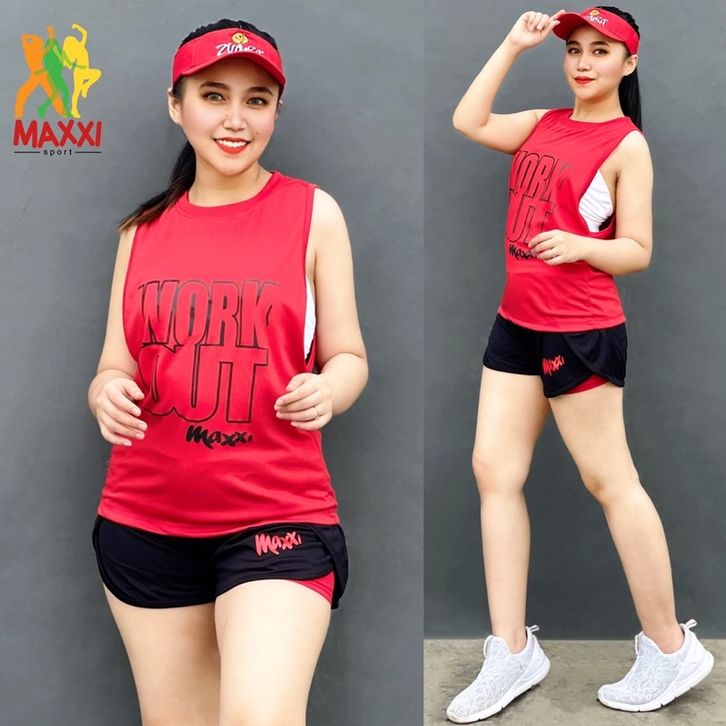 Setelan Olahraga Hotpants Tanktop Workout Pendek 2 In 1 Set Baju Senam Pendek Baju Gym Fitness Running Jogging Cycling
