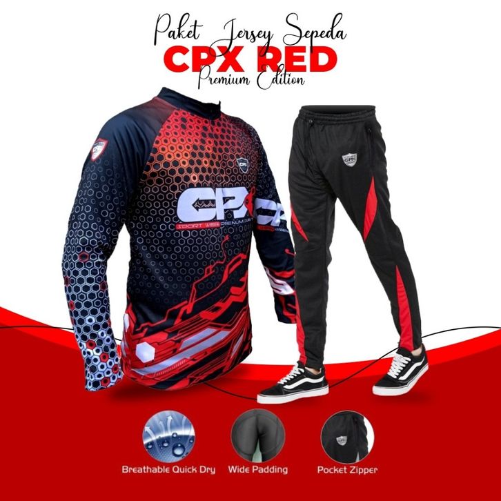 Set Jersey Cpx XC & Celana Sepeda Drifit StrechPoly Panjang Padding Busa Bikin Gowes Nyaman