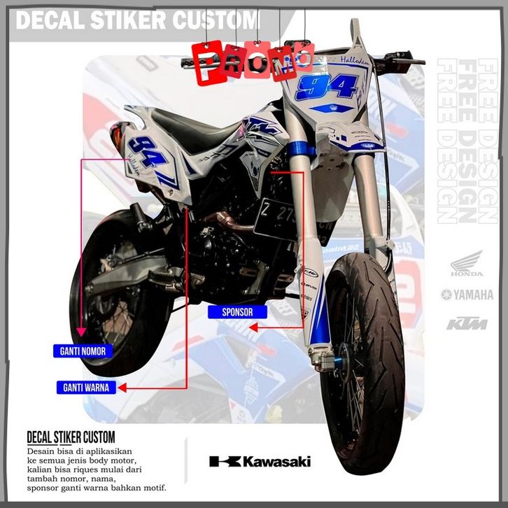 DECAL STIKER KLX BF DTRACKER GODECAL STIKER KLX BF DTRACKER GORDRDONS CRF WR PREMIUM FULLBODY CUSTOM DESAIN