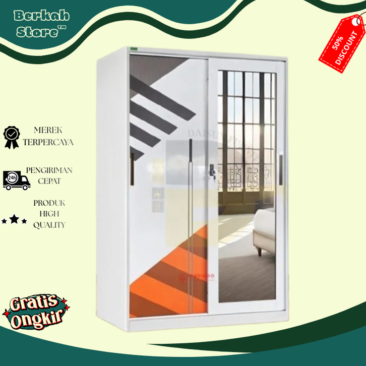 lemari pakaian besi sliding GRATIS PACKING KAYU