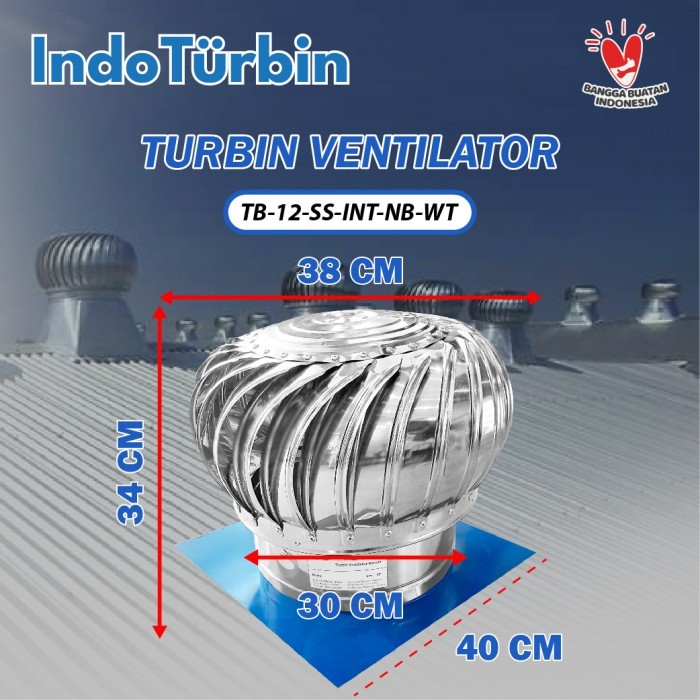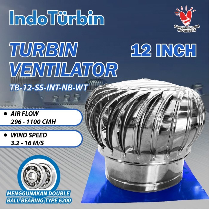 Turbin Ventilator 12 Inch Turbine Roof Fan Ventilasi Exhaust Atap Rumah Pabrik 12" IndoTurbin