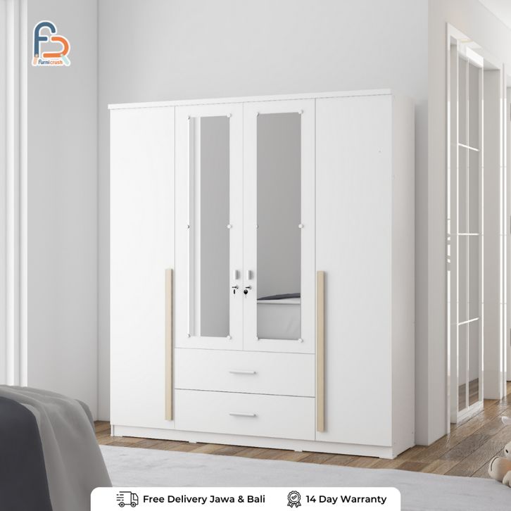 Lemari Pakaian 4 Pintu / Lemari Full Rak / Lemari Putih / Lemari Full rak dan Laci TERMURAH