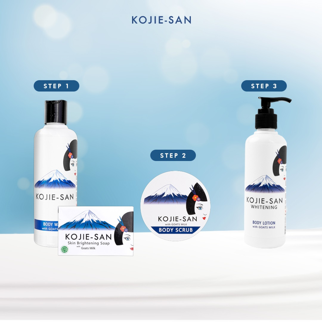 KOJIE-SAN OFFICIAL STORE - KOJIE-SAN Paket Goats Milk Complete Body Lotion + Body Wash + Scrub 250gr + Soap 65gr
