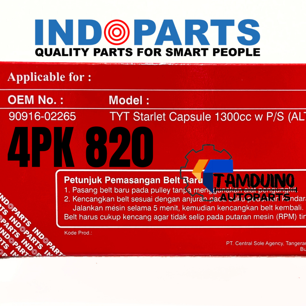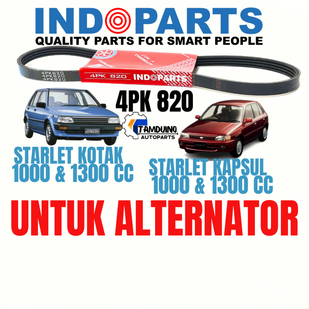 VAN BELT VANBELT FANBELT 4PK 820 Toyota STARLET KOTAK KAPSUL 1000 1300 FAN BEL ALTERNATOR