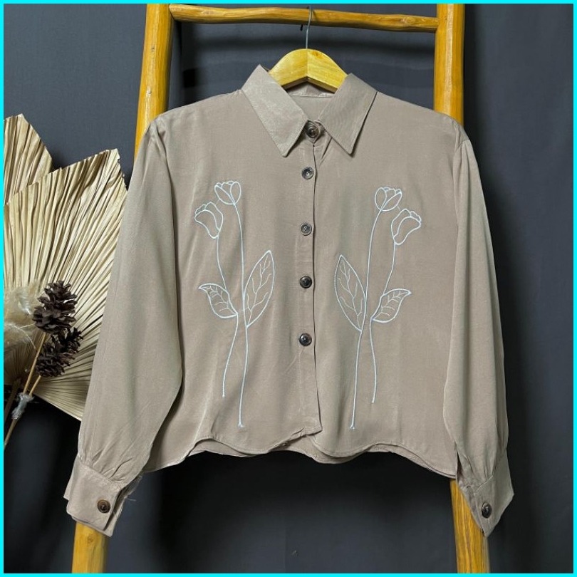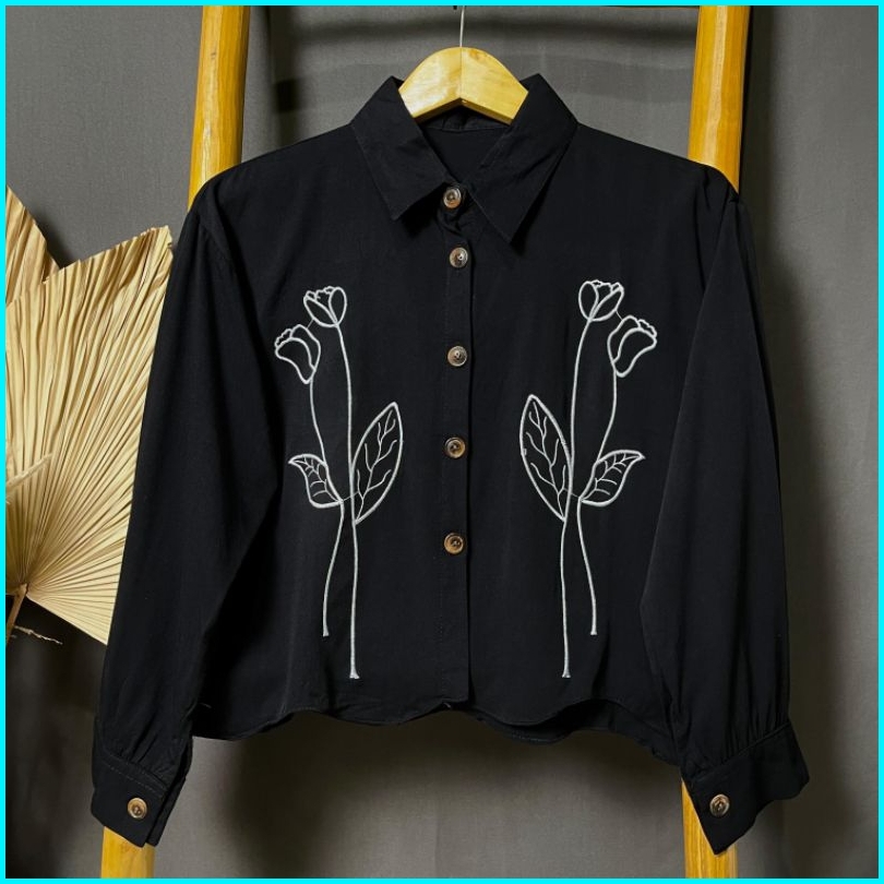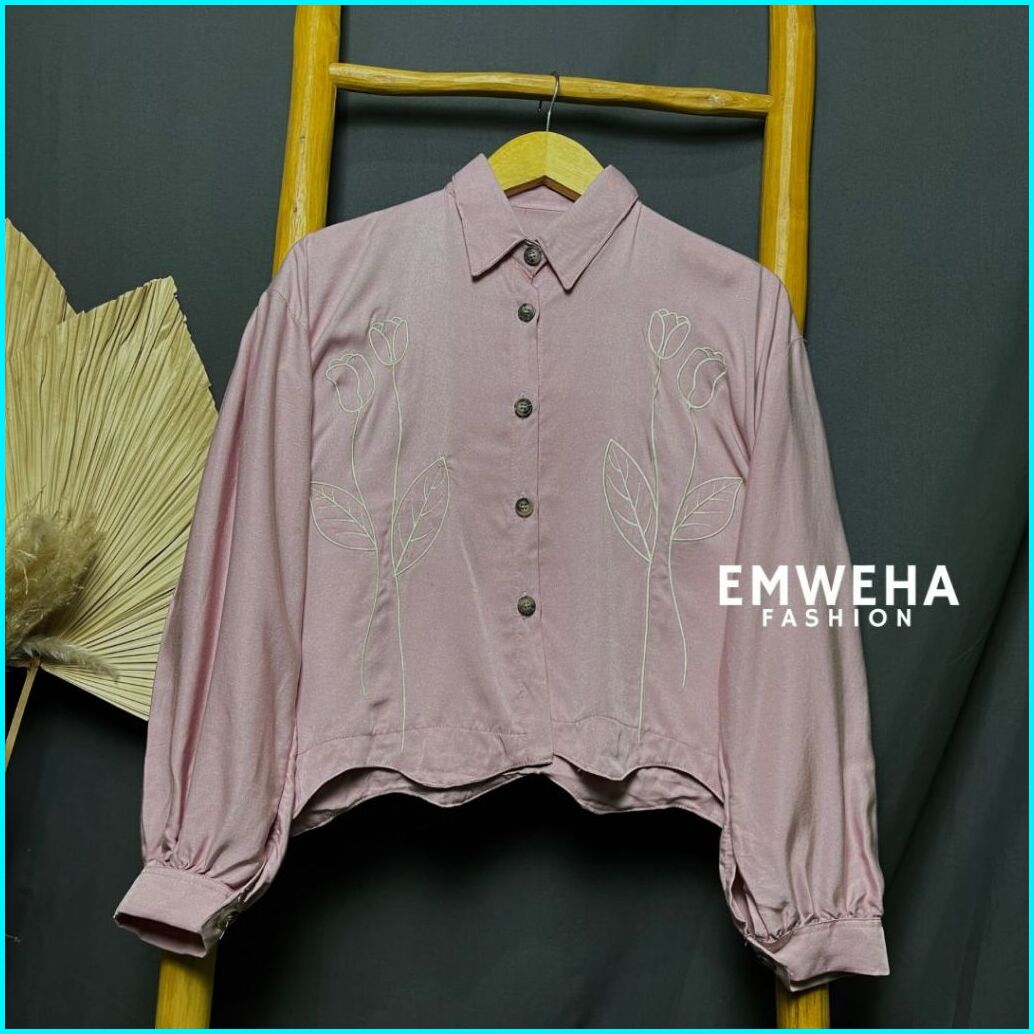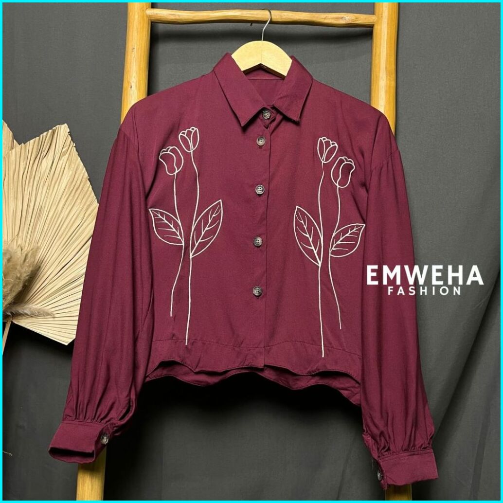 Emweha Blouse Wanita Bordir Bunga Rayon Premium Crop Pevita
