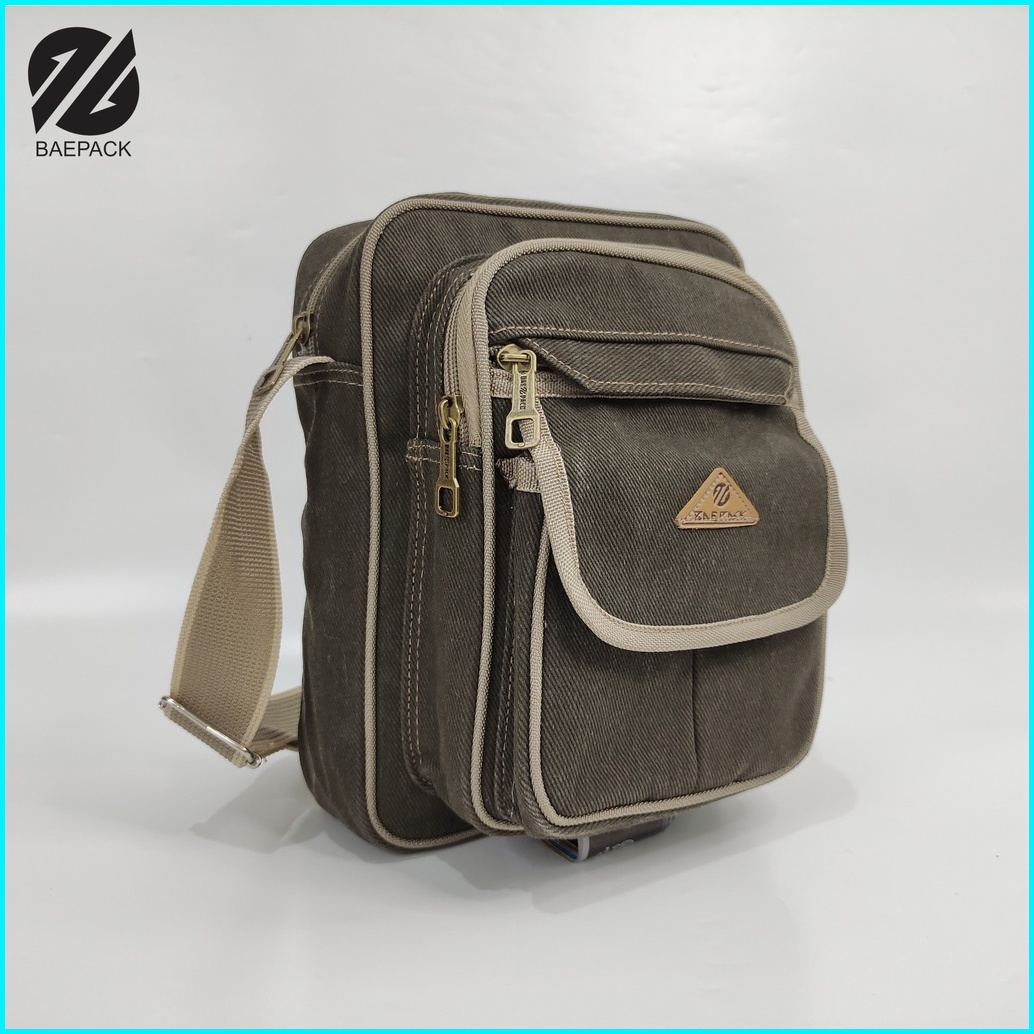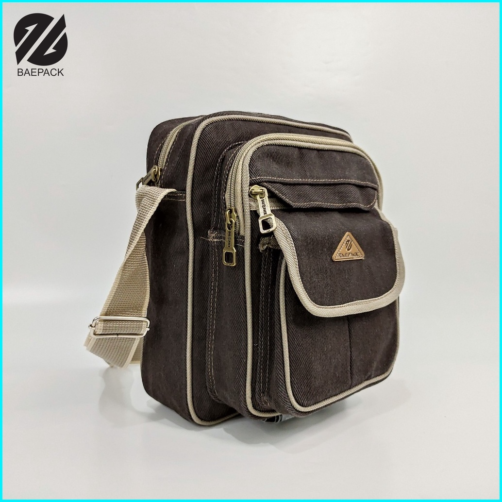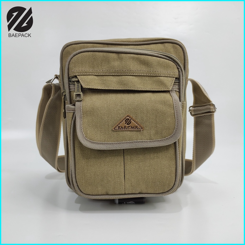 Baepack Tas Selempang Kanvas Pria Xenof Cream Original Tas Bahu Canvas Cowok Tas Selempang Premium Produsen Bandung