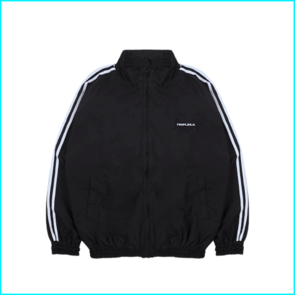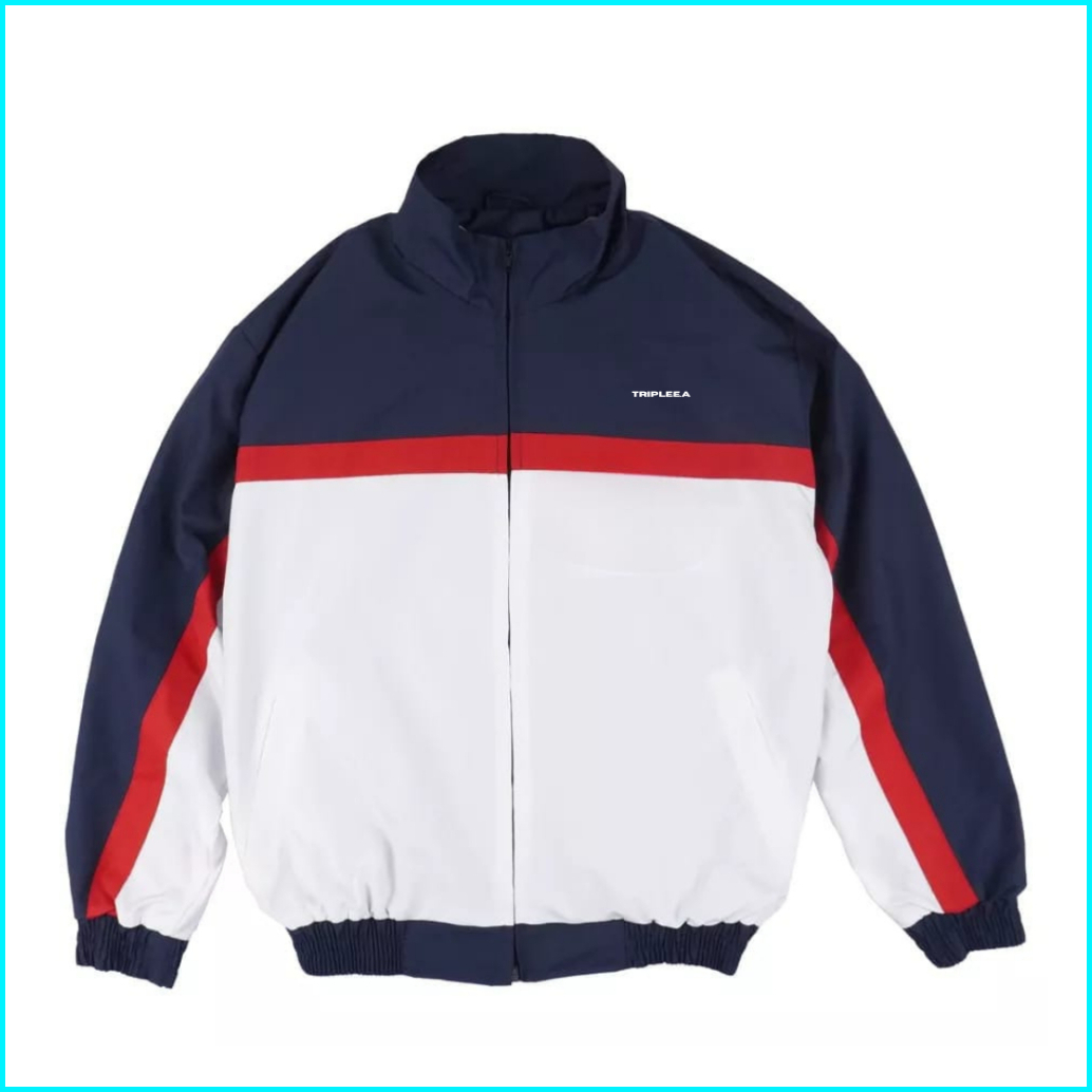 Triplee A - Jaket Varsity Colorblock Pria Wanita Windbreaker Colour Block Black Tracktop Hooligan Jacket Tracktop Suport
