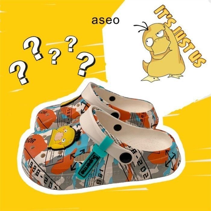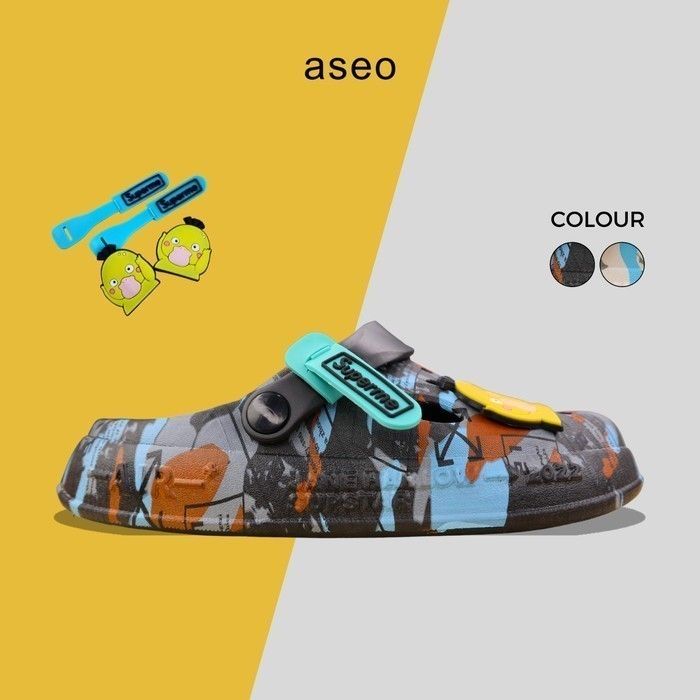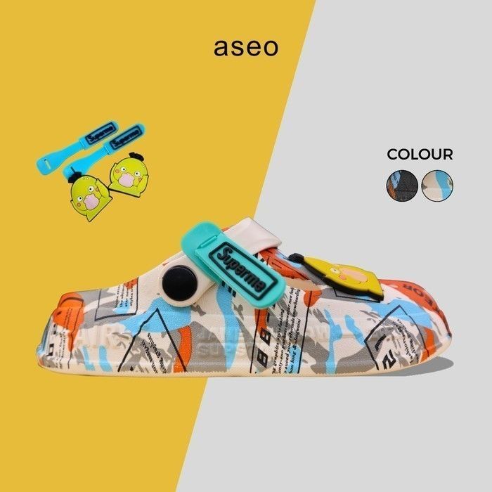 Sandal Crocs Dewasa Wanita Pria Aseo Sandal Pria Wanita Baim Crocs Motif Duck Bebek H130 - Black 36/37